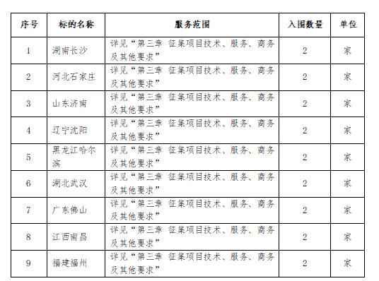 三、入圍供應商及主要標的信息